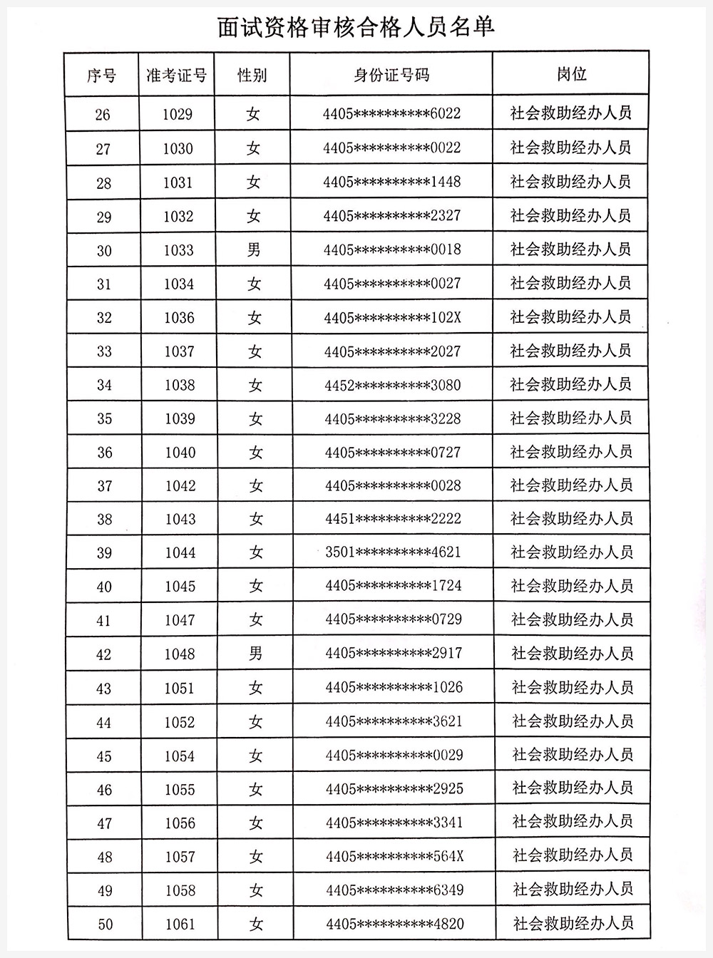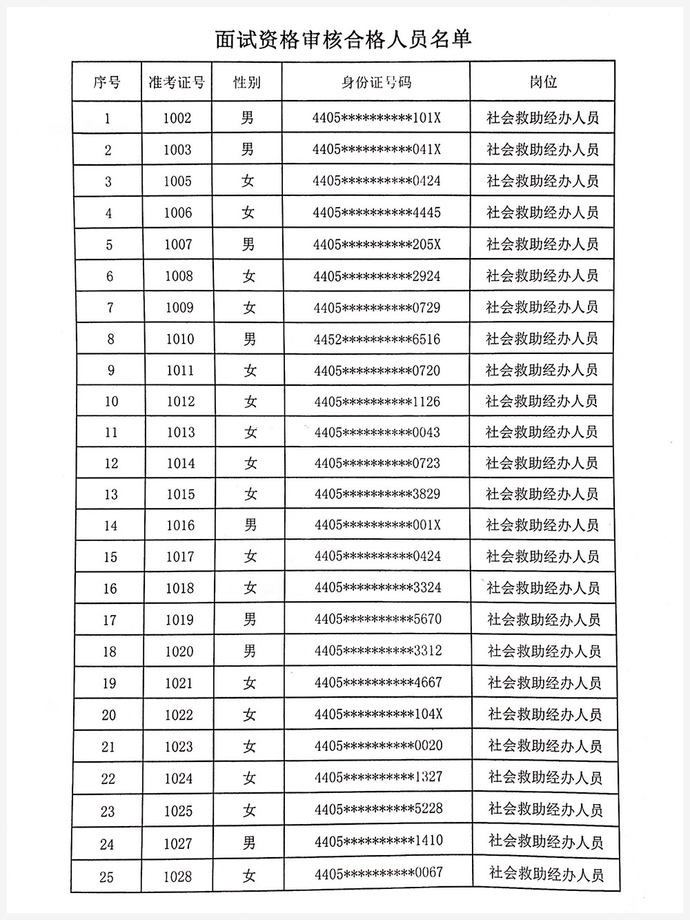 经《金平区民政局社会救助经办人员公开招聘笔试成绩公告》及面试资格审核结果,现将进入面试人员的名单和面试相关事宜通知如下: