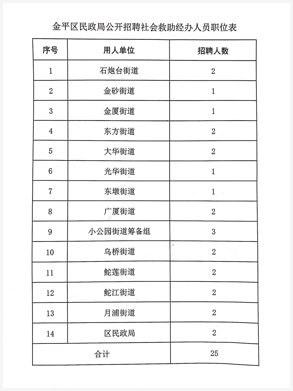 《金平区民政局公开招聘社会救助经办人员职位表》